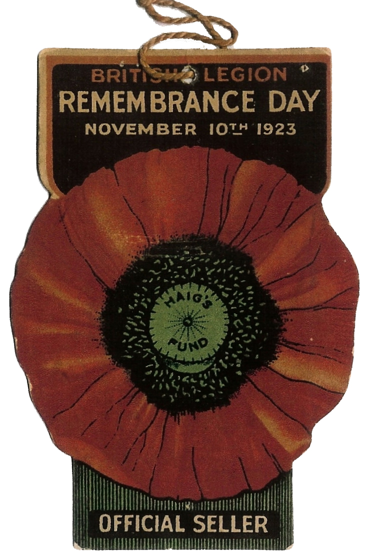 This charming photograph shows an official Poppy Seller at Margate War Memorial on Saturday 11th November 1922, just six days after the unveiling of the memorial. Note that the official Poppy Seller is wearing both a poppy and her official badge. She appears to have laurel leaves in her basket and there are laurel leaves on the table. Note also the children’s faces and their clothing.